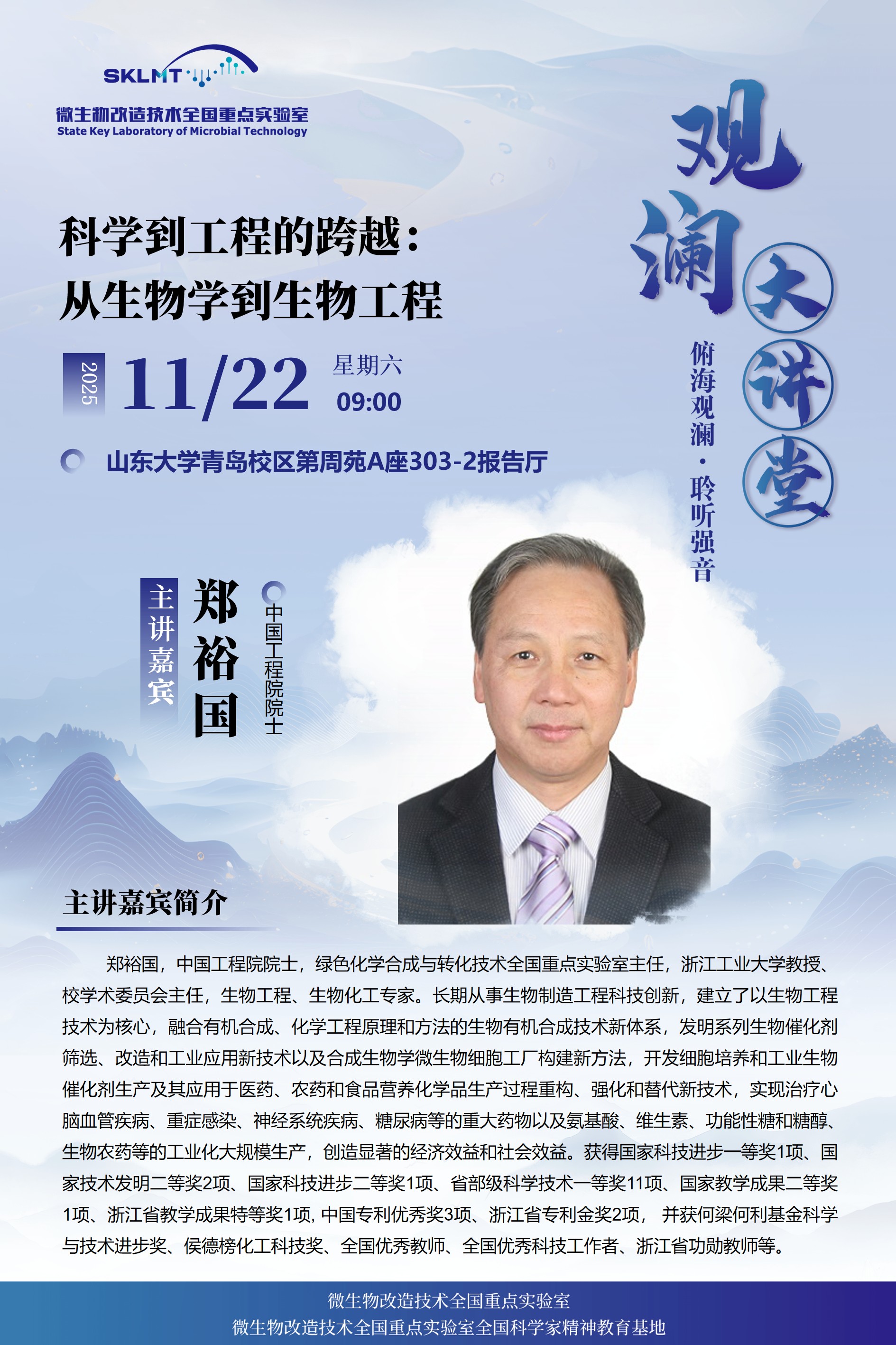 观澜大讲堂丨郑裕国院士:科学到工程的跨越: 从生物学到生物工程
