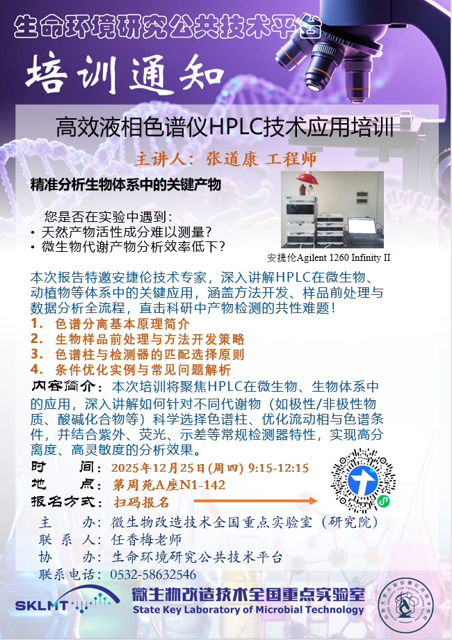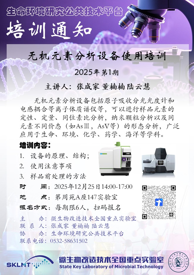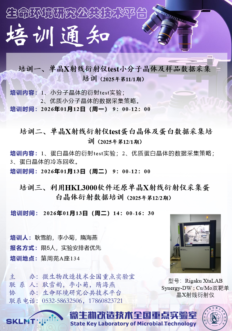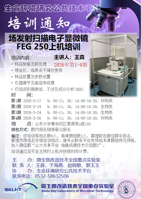山东大学生命环境研究公共技术平台,旨在创建一流高校公共科研服务体系,支撑学科创新人才培养及高端学术研究。平台位于山东大学青岛校区第周苑A座一层,占地4000 ㎡,技术团队由十余名以博士和高级职称为主的实验工程技术人员及多位平台技术专家组成,拥有一批大型精密科研仪器设备,总值1.7亿元,其中价值40万以上大型仪器设备70余台。